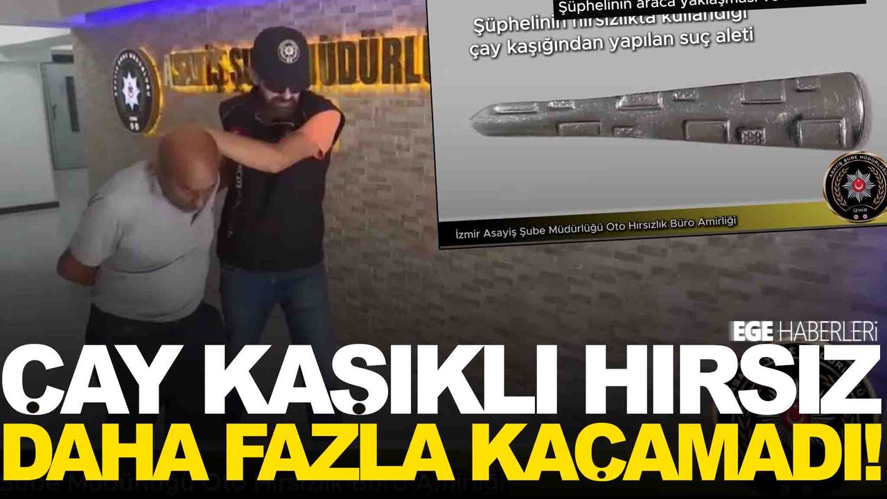 İzmir'de çay kaşığından kendisine özel bir aparat yaparak otomobil çalan hırsız, polis takibinden kaçamadı. Kıskıvrak yakalanan zanlı, emniyetteki işlemlerinin ardından çıkarıldığı mahkemece tutuklandı.