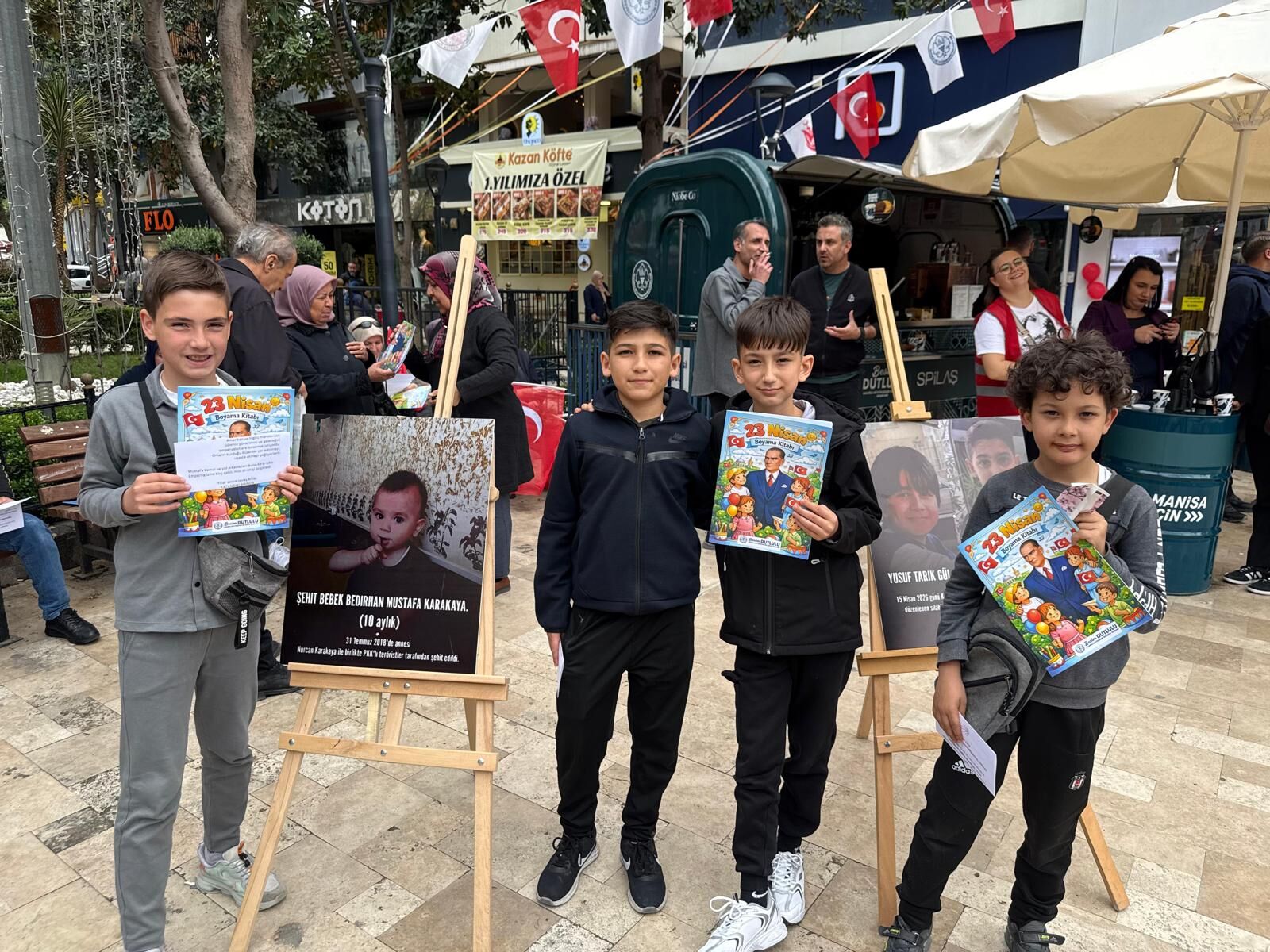 Etkinlik kapsamında aynı meydanda çocuklara boyama kitapları ve bayraklar dağıtılarak bayramları da kutlandı. Bir yanda kaybedilen çocukların sessizliği hissedilirken, diğer yanda çocukların neşesi dikkat çekti.