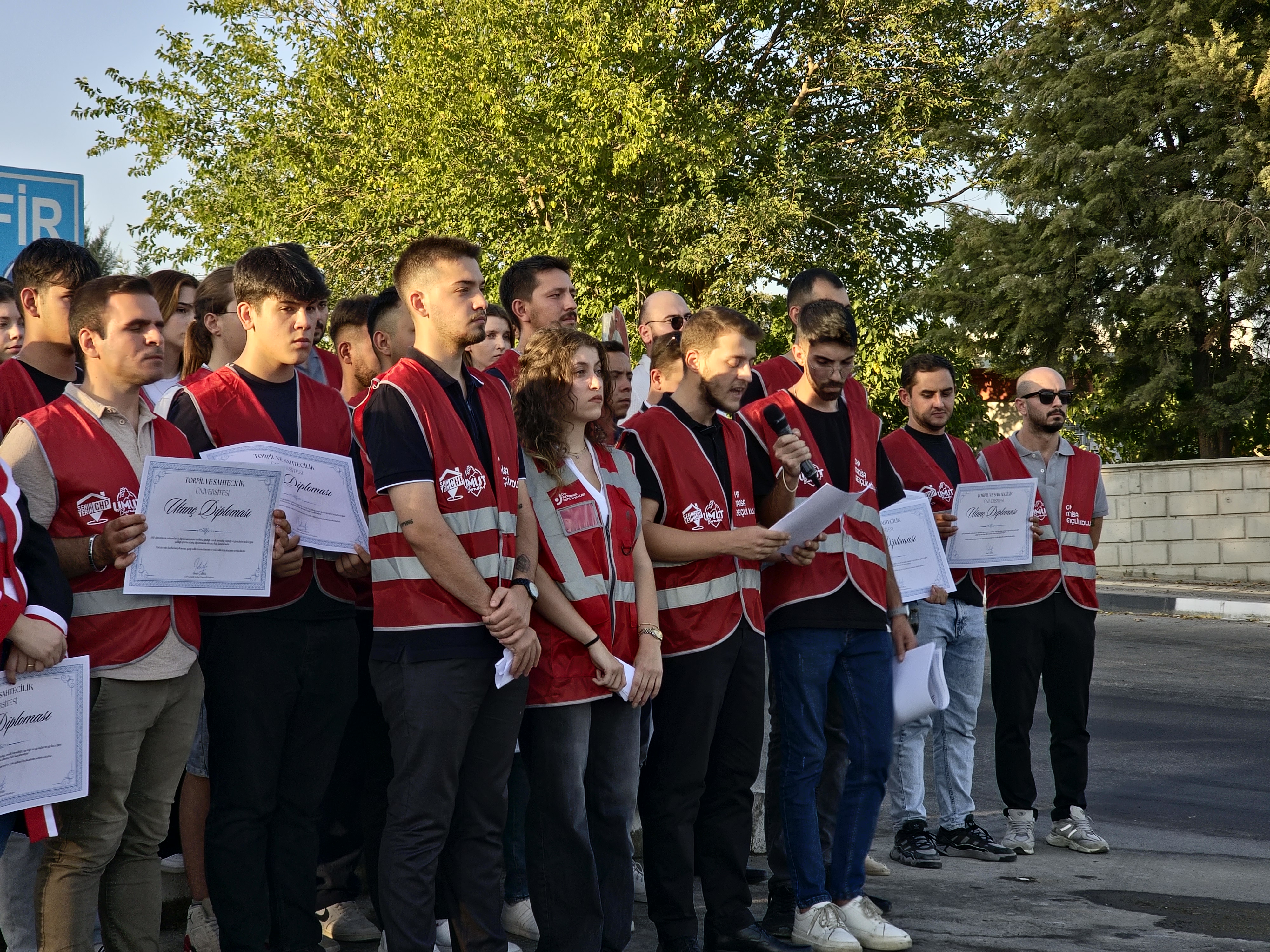 CHP Manisa İl Gençlik Kolları Başkanı Onur Çabuk, “Her sahte diplomanın karşısında duracağız, her emek hırsızını ifşa edeceğiz ve her şartta hak, hukuk, adalet diye haykıracağız. Bizim diplomamız sadece bir kâğıt parçası değil; alın terimiz, uykusuz gecelerimiz, umutlarımız ve onurumuzdur” diyerek açıklamasını sonlandırdı.