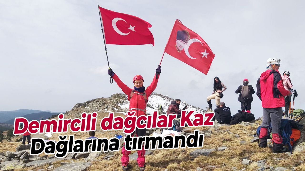 Türkiye Dağcılık Federasyonu’nun (Türkiye Dağcılık Federasyonu) 18 Mart Çanakkale Zaferi ve Şehitleri Anma Günü (18 Mart Çanakkale Zaferi ve Şehitleri Anma Günü) kapsamında düzenlediği etkinlikte, Manisa’nın Demirci ilçesinden katılan dağcılar, Kaz Dağları’nın (Kaz Dağları) zirvesine ulaştı.