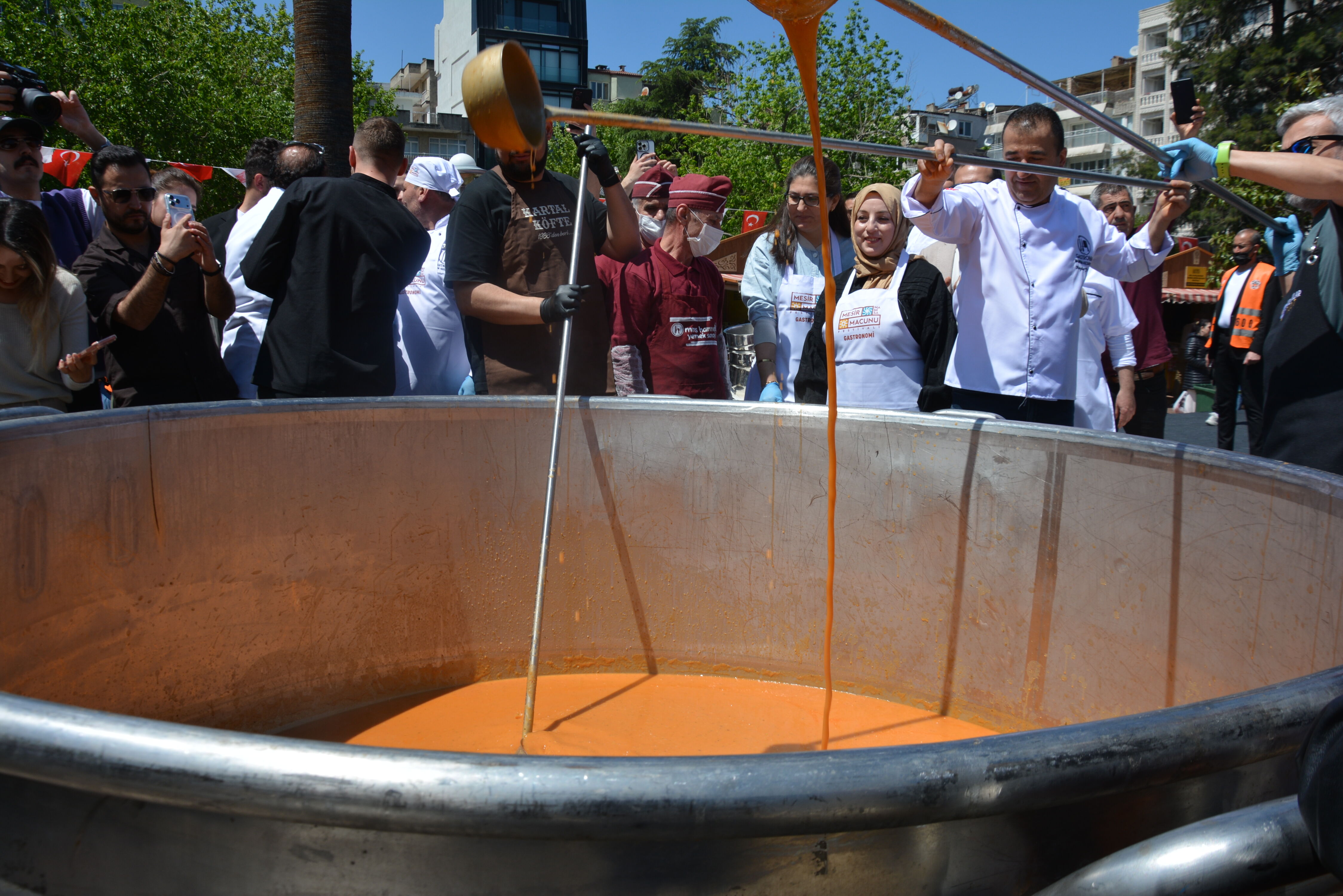 486’ncısı düzenlenen Uluslararası Manisa Mesir Macunu Festivali kapsamında gerçekleştirilen “Manisa Gastronomi Panayırı”, hem yöresel lezzetleri hem de renkli etkinlikleriyle ziyaretçilerin ilgisini çekmeye devam ediyor. Panayırda bugün düzenlenen mutfak şovu ise büyük ilgi gördü.