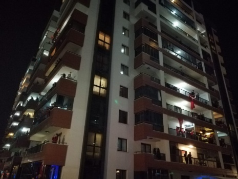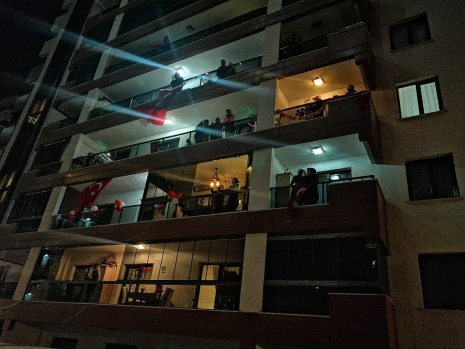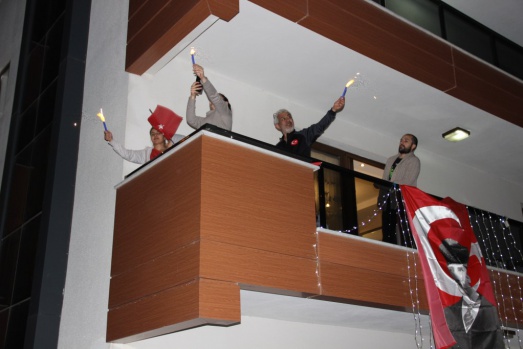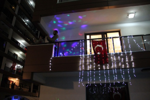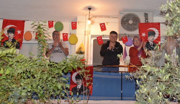 Korona virüs salgını ve sokağa çıkma kısıtlaması nedeniyle bu yıl yapılamayan 23 Nisan Ulusal Egemenlik ve Çocuk Bayramında vatandaşlar bayram coşkusunu evlerinden yaşadı. Saat 21.00’da tüm vatandaşlar evlerinin balkonlarında İstiklal Marşını okurken Manisa’nın Yunusemre ilçesindeki bir sitede farklı bir organizasyon gerçekleştirildi.