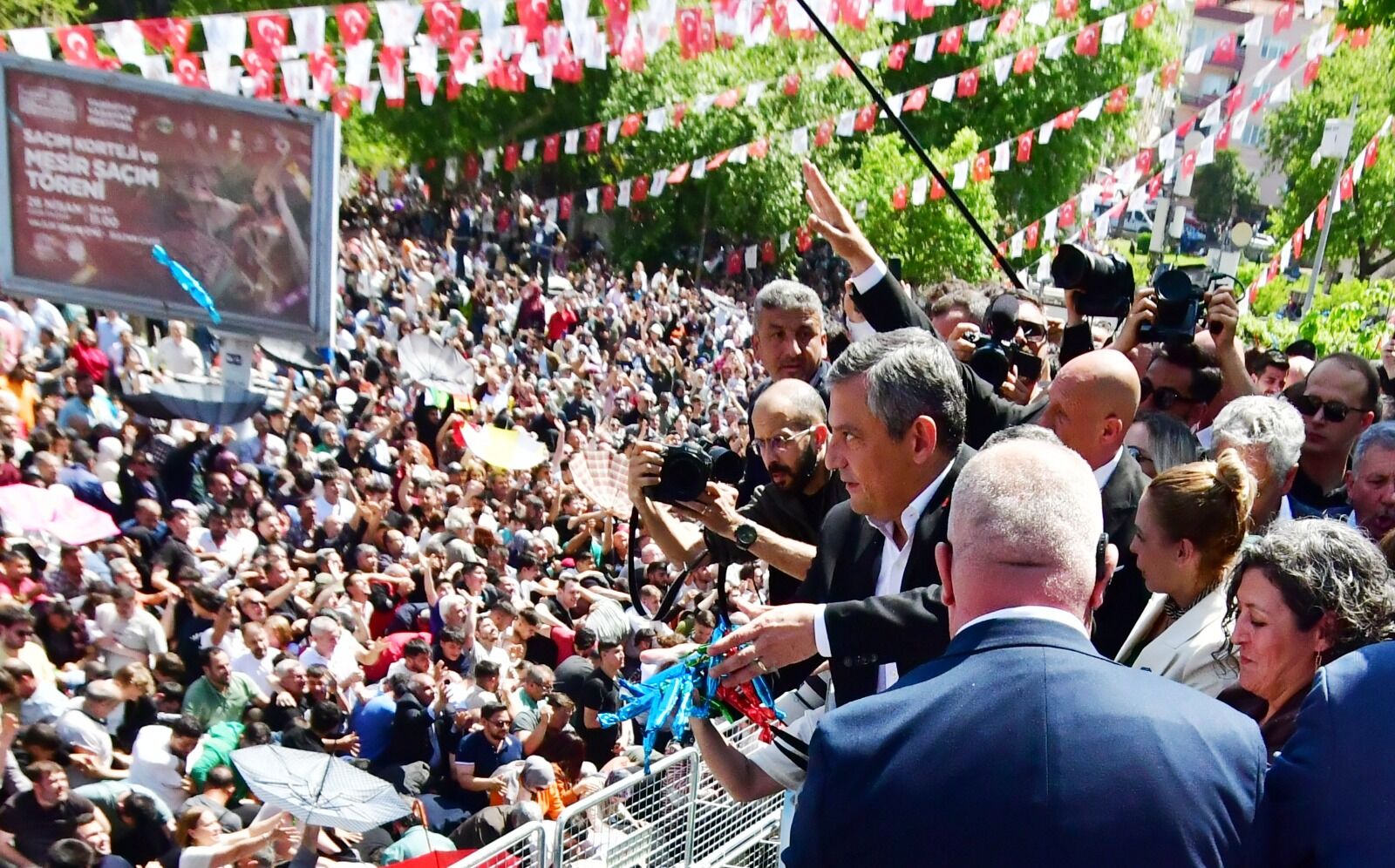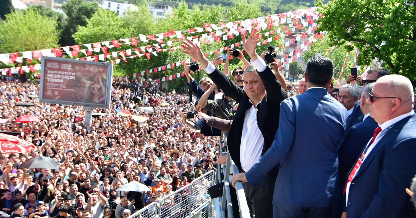 Manisa Hükümet Konağı önünde kortej yürüyüşü ile başlayan festivale, CHP Genel Başkanı Özgür Özel ve eşi Didem Özel, Manisa Valisi Vahdettin Özkan, Manisa Büyükşehir Belediye Başkanı Besim Dutlulu, TBMM eski başkanlarından Bülent Arınç, AK Parti Manisa Milletvekili Mücahit Arınç, MHP Grup Başkanvekili ve Manisa Milletvekili Erkan Akçay, İYİ Parti Grup Başkanvekili ve Manisa Milletvekili Şenol Sunat, TBMM Yeni Yol Grup Başkanvekili ve Muğla Milletvekili Selçuk Özdağ, CHP Manisa milletvekilleri Ahmet Vehbi Bakırlıoğlu, Bekir Başevirgen, elektrik akımına kapılarak hayatını kaybeden Manisa Büyükşehir Belediye Başkanı Ferdi Zeyrek'in eşi Nurcan Zeyrek, çevre illerin milletvekilleri, ilçe belediye başkanları, daire müdürleri, siyasi parti temsilcileri, Azerbaycan, Kuzey Makedonya, Ukrayna, Sırbistan, Endonezya, Litvanya, Slovakya, Polonya, Kazakistan, Yunanistan, KKTC ve İtalya'nın delegasyonları, halk oyunları ekipleri ve on binlerce vatandaş katıldı.