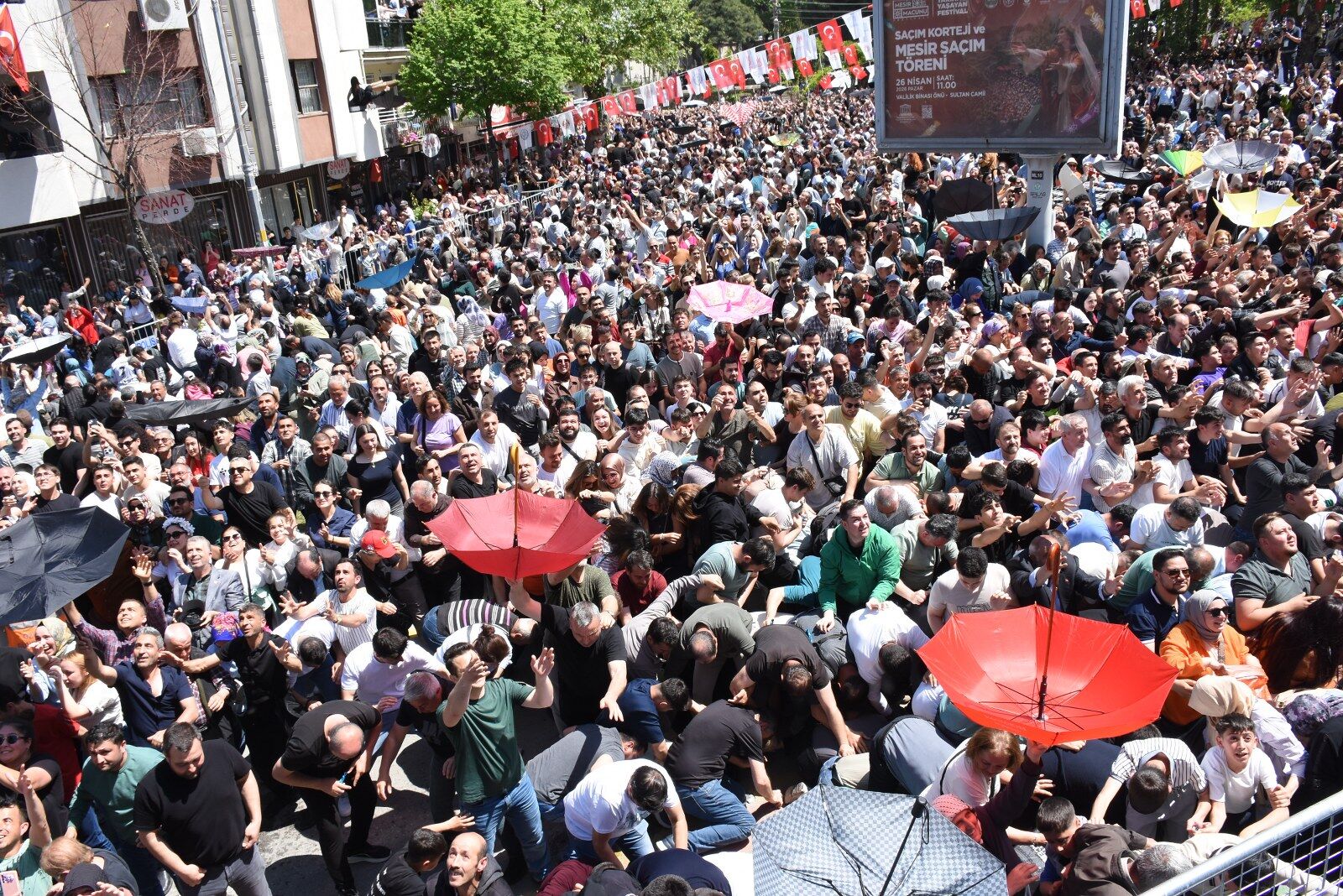 Manisa'da asırlardır süren mesir geleneği bu yıl da büyük coşkuya sahne oldu. Yaklaşık bir haftadır devam eden etkinlikler, saçım töreni ile final yaparken, tören öncesinde Manisa Valiliği’nden Sultan Camii’ne kadar süren kortej düzenlendi. Tarihi Sultan Camii'nin kubbe ve minareleri ile camiye yakın bazı binalardan saçılan 10 ton mesir macunu için on binlerce kişi aynı anda harekete geçince meydanda izdiham yaşandı. Görevlilerin saçtığı mesirleri kapabilmek için adeta birbirini ezen vatandaşlar, ortaya renkli görüntüler çıkardı. Vatandaşlar, 486 yıllık geleneği devam ettirmenin coşkusunu yaşadı.