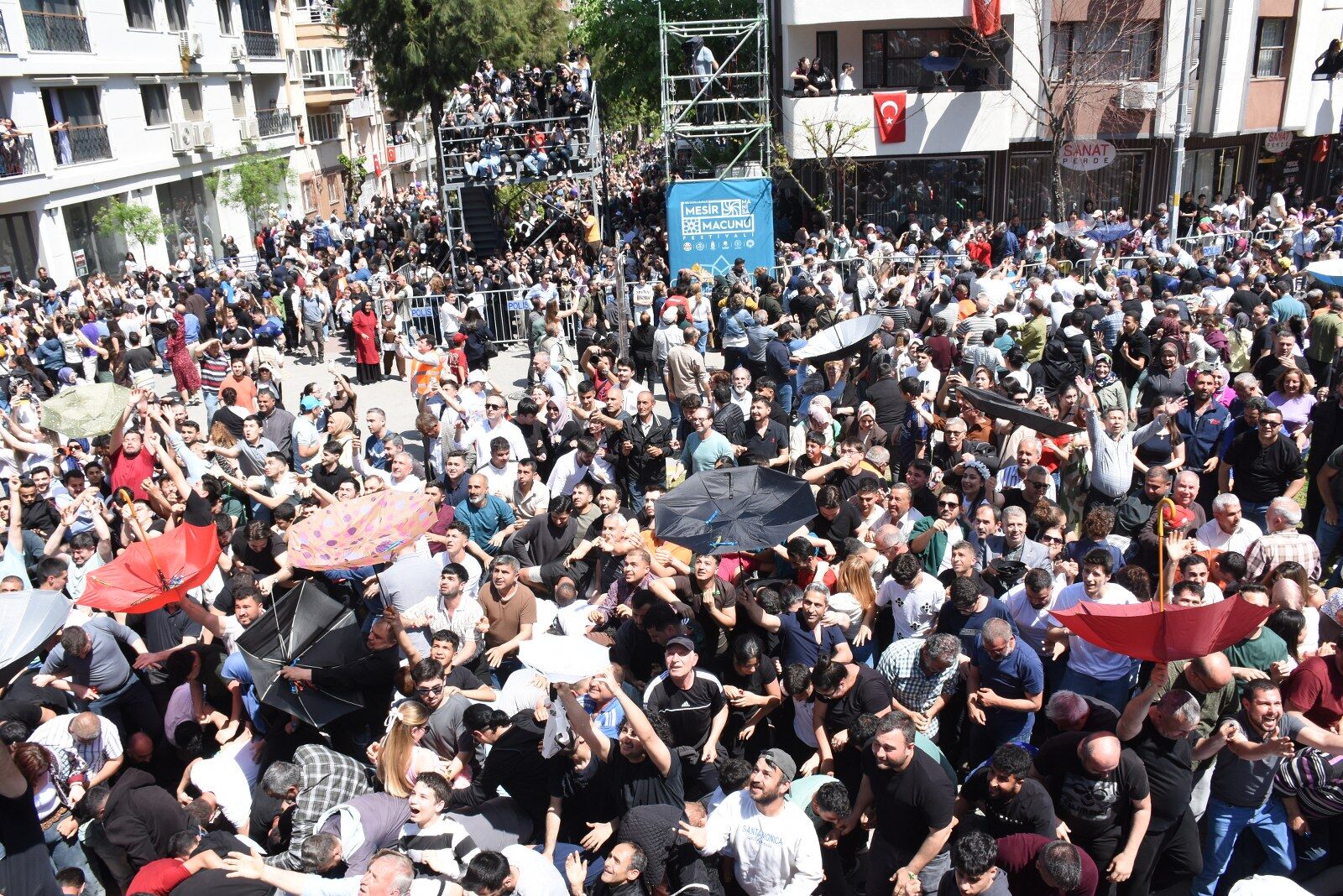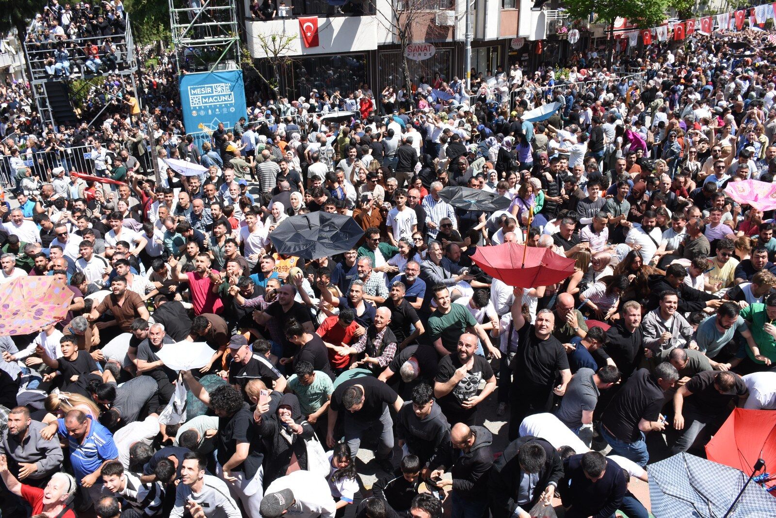 Sadece Türkiye'nin değil dünyanın da en eski geleneklerinden biri olan Manisa Mesir Macunu Festivali karnaval havasında gerçekleştirilen kortej yürüyüşünün ardından Sultan Camii'nin kubbe, minare ve çevredeki binalardan saçılan mesir macunlarından kapabilmek için on binlerce insan izdihama neden oldu. 44 farklı noktadan 10 ton mesir macununu kapabilmek için vatandaşlar adeta birbirinin üzerine çıktı.