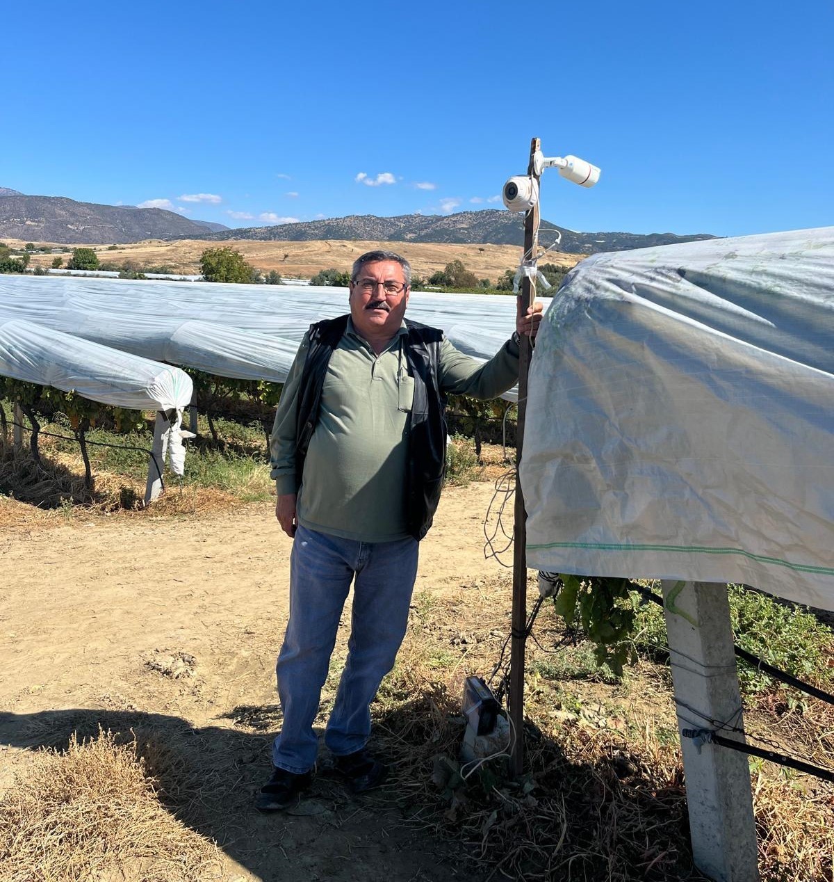 Manisa’nın Sarıgöl ilçesine bağlı Özpınar Mahallesi’nde üzüm üreticisi Halil Kılıç, bağını hırsızlık ve olası kayıplara karşı güvenlik kameralarıyla koruma altına aldı.