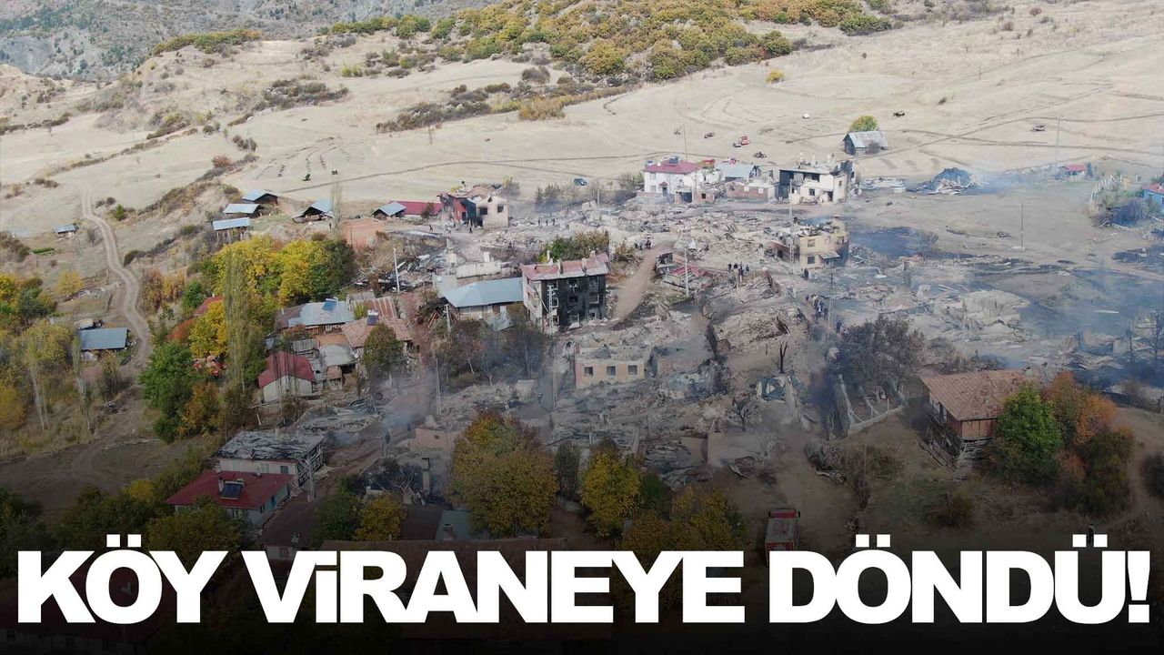 47 evin yandığı köy, adeta savaş alanını aratmazken yanan evlerin enkazı ise havadan görüntülendi.