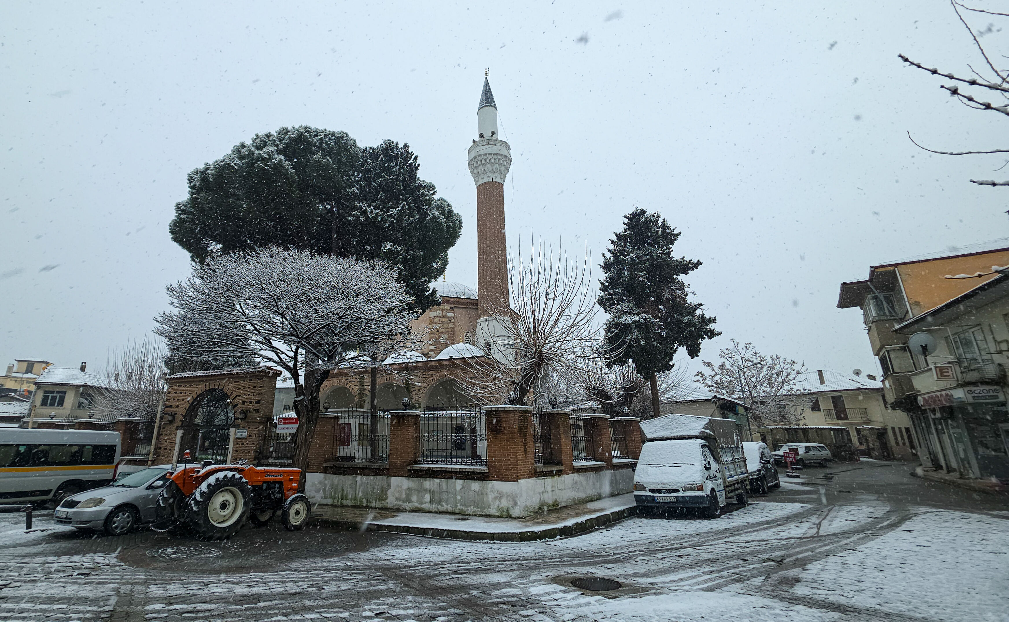 Kula’da yağışın ardından tarihi yapılar ve sokaklar beyaz örtüyle kaplandı. Kula Kurşunlu Camii ile 18. yüzyıl Osmanlı mimarisinin izlerini taşıyan geleneksel Kula evleri kar altında kartpostallık görüntüler oluşturdu.