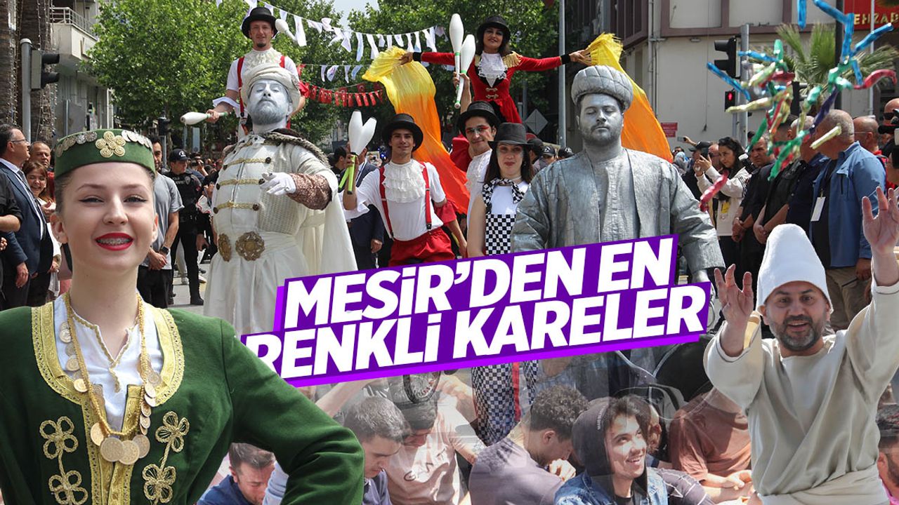 Şehzadelik dönemini Manisa'da geçiren Osmanlı padişahları, Hafsa Sultan ve nedimeleri ile mesir macununun mucidi Merkez Efendi'yi dönem kostümleriyle canlandıran tiyatrocuların da katıldığı yürüyüşte halk oyunları ekipleri gösteri sundu.