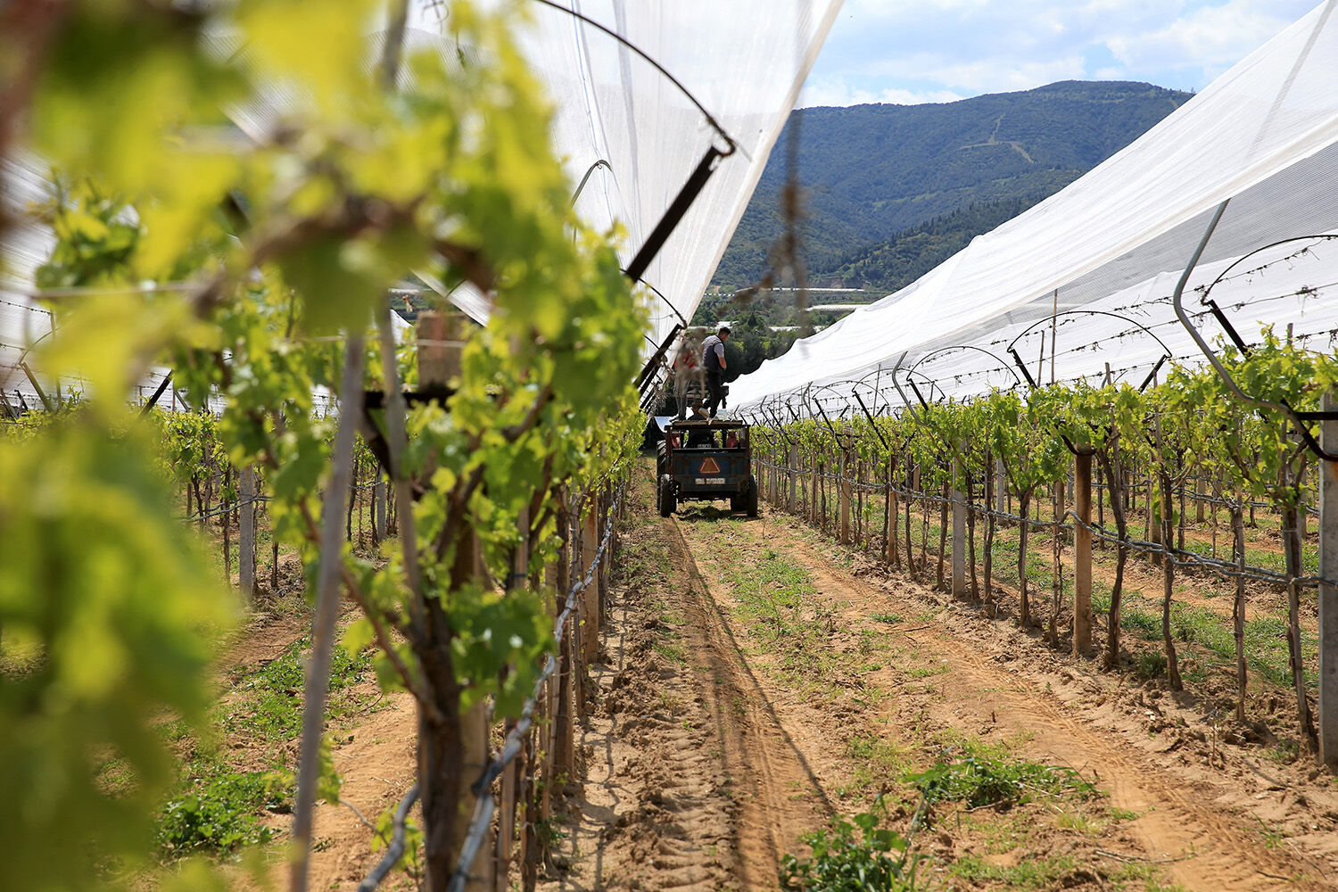 Sarıgöl’de yaklaşık 130 bin dönüm alanda üzüm üretimi yapılırken, bunun yaklaşık 3 bin dönümlük kısmı dolu tülü sistemiyle korunuyor. Saydam yapıya sahip özel örtüler, asmaların üzerine gerilerek hem güneşin yakıcı etkisini azaltıyor hem de dolu ve dona karşı fiziksel koruma sağlıyor.