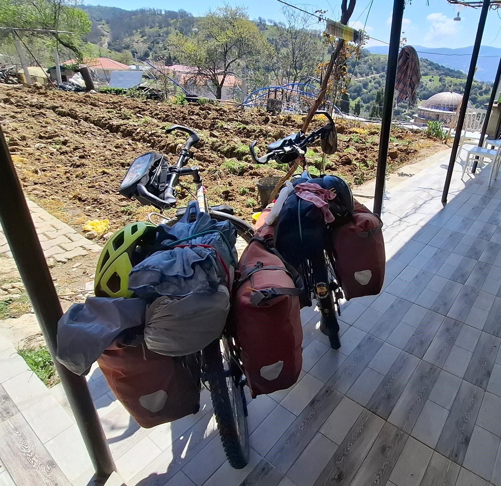 Bisikletleriyle dünya turu yapan Fransız karı-koca, Sarıgöl Ziyanlar Köyü'nden geçerken yol kenarında karşılaştıkları çoban Mehmet Gencer'in daveti üzerine evinde misafir edildi.