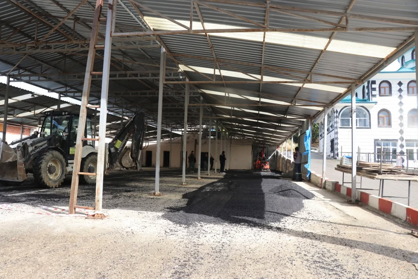 Bozuk zemin nedeniyle hem esnafın hem de vatandaşların zorlandığı pazaryerinde belediye ekipleri tarafından Rotmix serimi yapıldı.