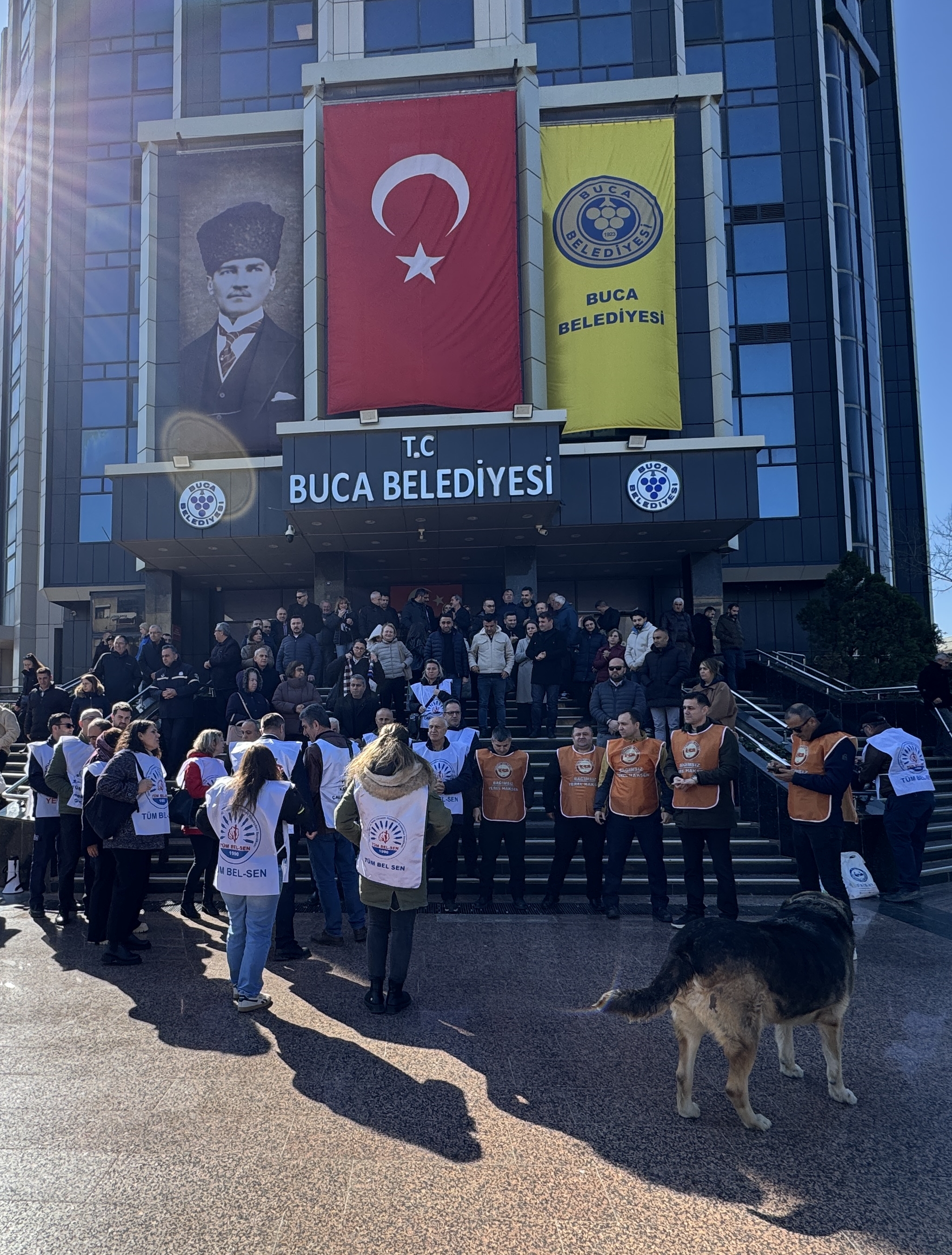 Buca Belediyesi bünyesinde çalışan yaklaşık 300 memur, çeşitli mali haklarının ödenmediği gerekçesiyle iş bıraktı. Belediye binası önünde bir araya gelen çalışanlar, 18 Şubat’ta başlattıkları kısa süreli iş bırakma eylemlerine devam etti.