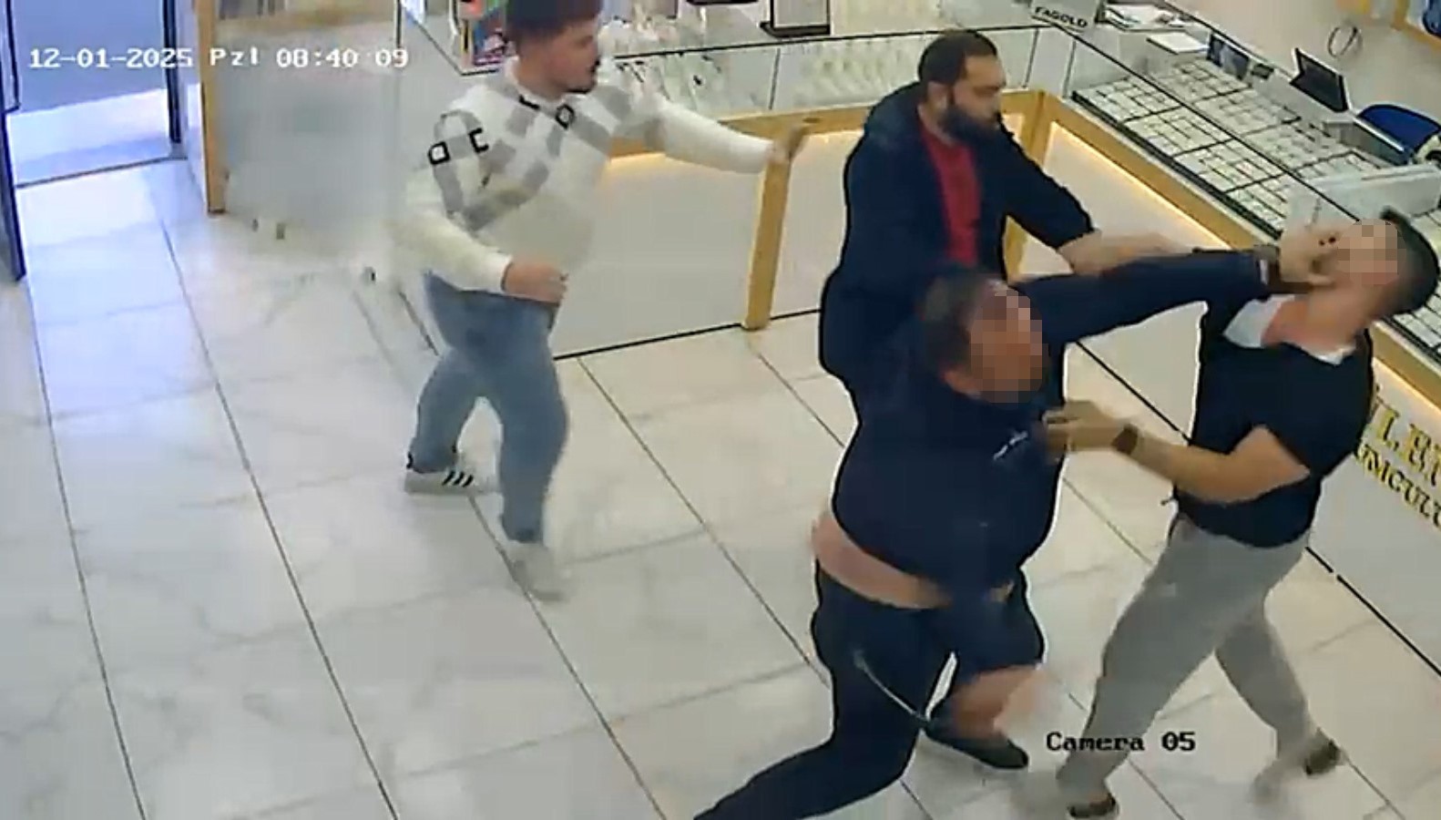 Tartışmanın ardından O.G., A.B. ve beraberlerindeki kişi, M.K.’nin çalıştığı kuyumcuya gitti. Burada M.K.’ye yönelik tekme ve tokatlı saldırı başladı. Saldırıya uğrayan kuyumcu da kendisini savunarak karşılık verdi. Kuyumcu dükkanında yaşanan arbede, iş yerinin güvenlik kamerası tarafından anbean kaydedildi.