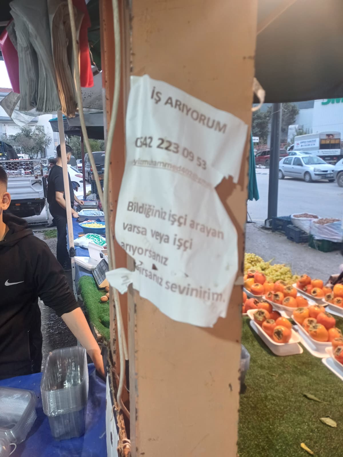 Pazarda alışveriş yapan vatandaşlar, direğe asılı ilanı görünce şaşkınlık yaşadı. “İş arıyorum. Bildiğiniz işçi arayan varsa veya işçi arıyorsanız paylaşırsanız sevinirim.” ifadelerinin yer aldığı ilanda, iş arayan kişinin telefon numarası ve e-posta adresi de bulundu.