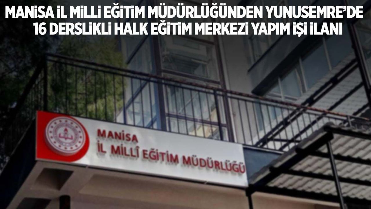 MANİSA YUNUSEMRE İLÇESİ 16 DERSLİKLİ HALK EĞİTİM MERKEZİ YAPIM İŞİ yapım işi 4734 sayılı Kamu İhale Kanununun 19 uncu maddesine göre açık ihale usulü ile ihale edilecek olup, teklifler sadece elektronik ortamda EKAP üzerinden alınacaktır. İhaleye ilişkin ayrıntılı bilgiler aşağıda yer almaktadır: