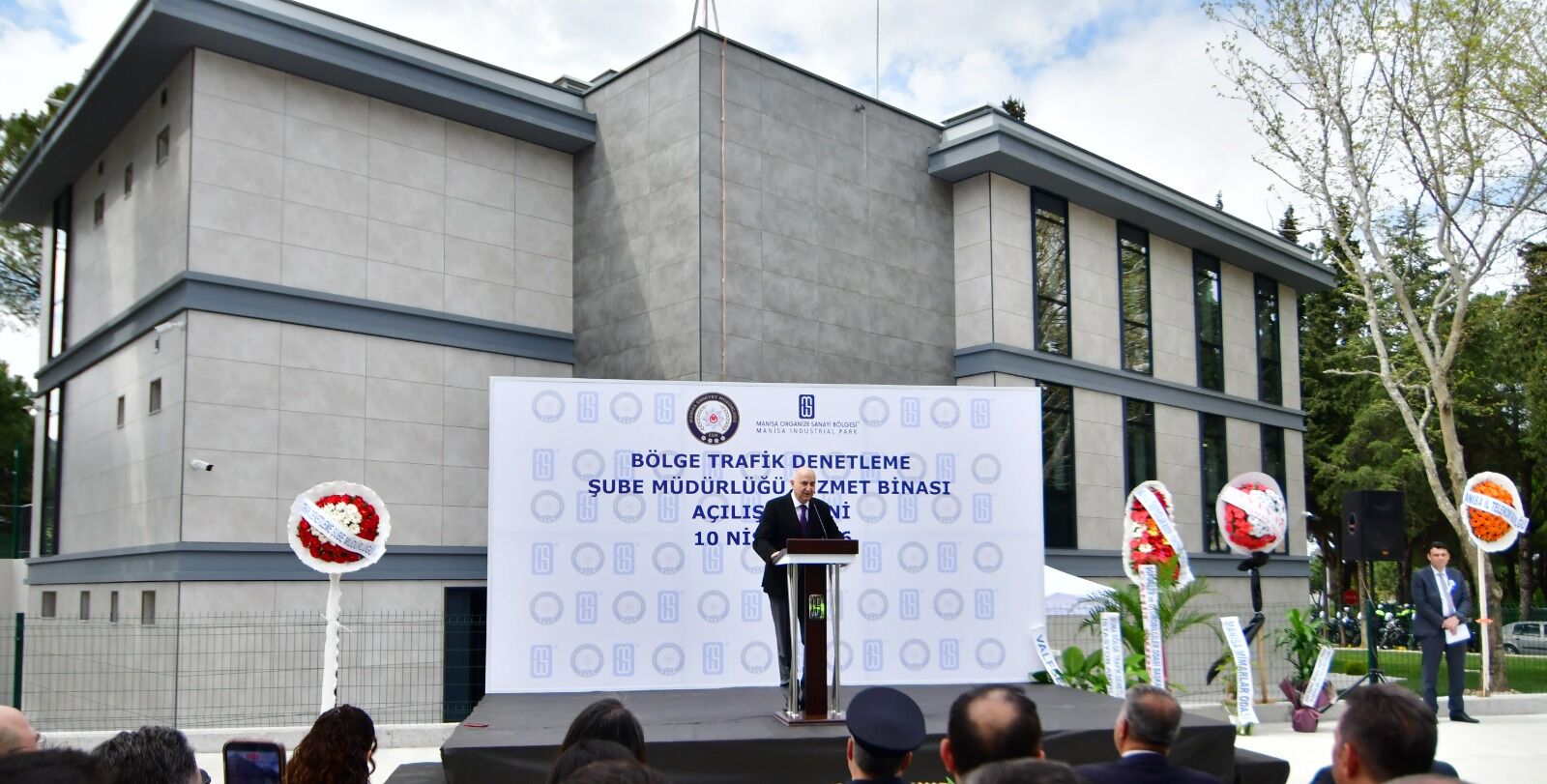Manisa Organize Sanayi Bölgesi (OSB) tarafından yeniden inşa edilen Bölge Trafik Denetleme Şube Müdürlüğü hizmet binası, 10 Nisan Polis Günü’nde düzenlenen görkemli törenle açıldı. Yaklaşık 10 milyon liranın üzerinde bir bütçe ile gerçekleştirilen yatırım ile tamamlanan Manisa Emniyet Müdürlüğü Bölge Trafik Denetleme Müdürlüğü yeni hizmet binası, Emniyet Teşkilatı’na “anlamlı bir hediye” olarak kazandırıldı.