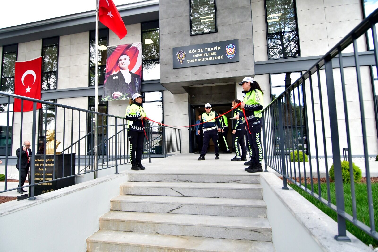 Manisa OSB girişinde gerçekleştirilen açılış törenine Manisa Vali Yardımcısı Mustafa Harputlu, Yunusemre Kaymakamı Celalettin Cantürk, Manisa OSB Yönetim Kurulu Başkanı Sait Cemal Türek, Manisa Emniyet Müdürü Fahri Aktaş, OSB Bölge Müdürü Funda Karaboran, emniyet müdür yardımcıları, şube müdürleri, emekli polisler ve çok sayıda protokol üyesi katıldı.