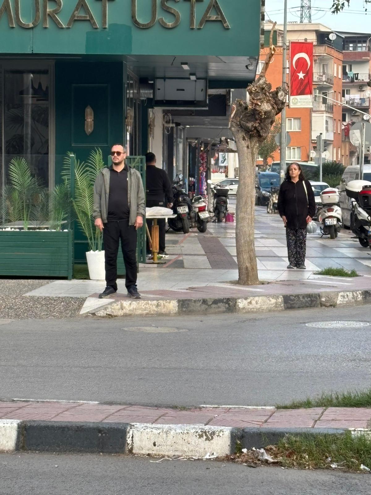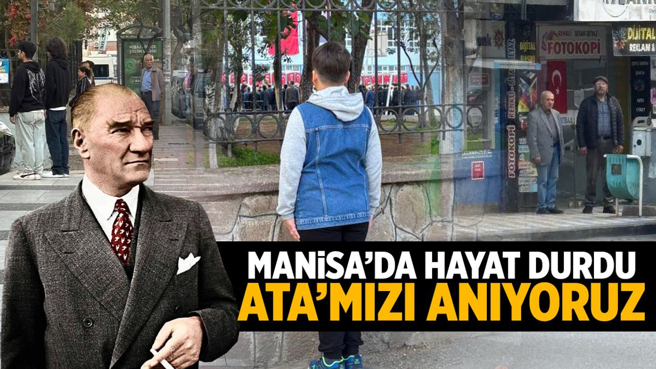 Saat 09.05’te sirenlerin çalmasıyla birlikte Manisa genelinde hayat adeta durdu. Yoldaki sürücüler araçlarından indi, esnaf ve vatandaşlar saygı duruşunda bulunarak Atatürk’e olan minnettarlıklarını gösterdi.