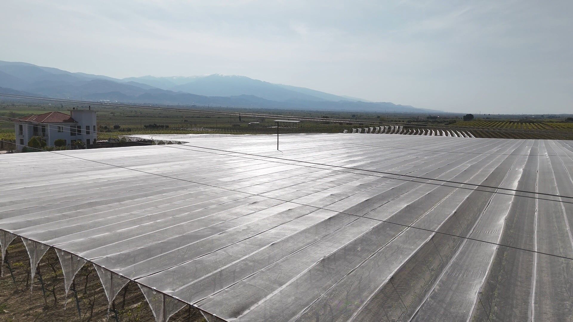 Manisa’nın Alaşehir ilçesinde üzüm bağlarında iklim risklerine karşı yeni bir koruma yöntemi uygulanmaya başlandı. Kasaplı Mahallesi’nde kurulan sistemle bağlar, özel tül örtülerle dış etkenlere karşı korunuyor. Bu yöntem sayesinde özellikle dolu yağışlarının neden olduğu ürün kayıplarının önüne geçilmesi hedefleniyor.