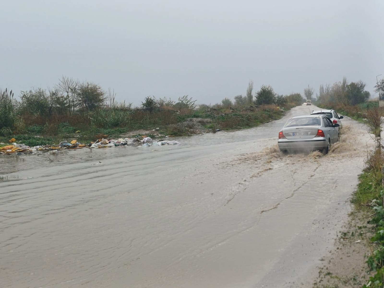 Akhisar Caddesi’nden 354 Sokak’a uzanan ve bazı mahallelere ulaşımda kritik öneme sahip güzergâhta, zemin kayması sonucu büyük hasar oluştu. Çöken beton zeminin üzerinde dev bir su birikintisi oluşurken, sürücüler tek şerit üzerinden geçebildi.