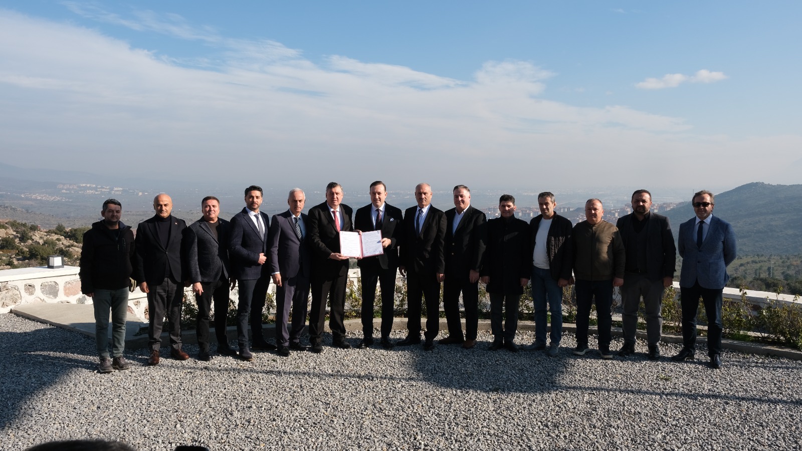 Manisa sanayisinin gelişimine ve küçük sanayi esnafının modern, planlı ve sürdürülebilir alanlara kavuşmasına katkı sağlayacak proje kapsamında düzenlenen imza törenine; Muradiye OSB Yönetim Kurulu Başkanı Osman Kıvırcık, Kooperatif Başkanı Zeki Apak, Muradiye OSB Yönetim Kurulu Üyesi Serkan Yurteri, Manisa Madeni Sanatkarlar Odası Başkan Adayı ve Kooperatif Yönetim Kurulu Üyesi Ertan Midilli ile Kooperatif Yönetim Kurulu Üyeleri katıldı.