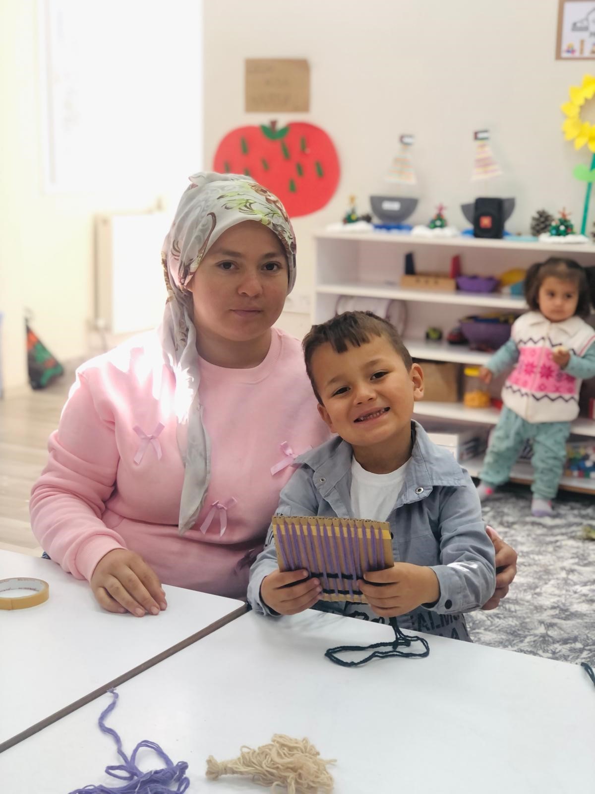 Anne çocuk kilim dokuma etkinliği, aile bağlarını güçlendiren özel anlara sahne oldu. İlk cümleden itibaren etkinliğin temel amacı olan birlikte üretme duygusu ön plana çıktı. Anneler, çocuklarına geçmişten gelen bilgileri aktarırken; öğrenciler de anneleriyle aynı tezgâhta olmanın mutluluğunu yaşadı.