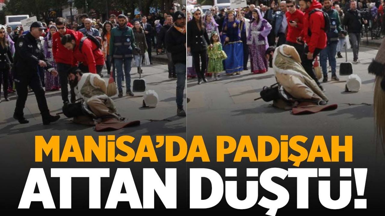 Tarihi figürlerin canlandırıldığı yürüyüş sırasında 1. Mustafa rolünü üstlenen kişi at üzerinde dengesini kaybederek yere düştü.