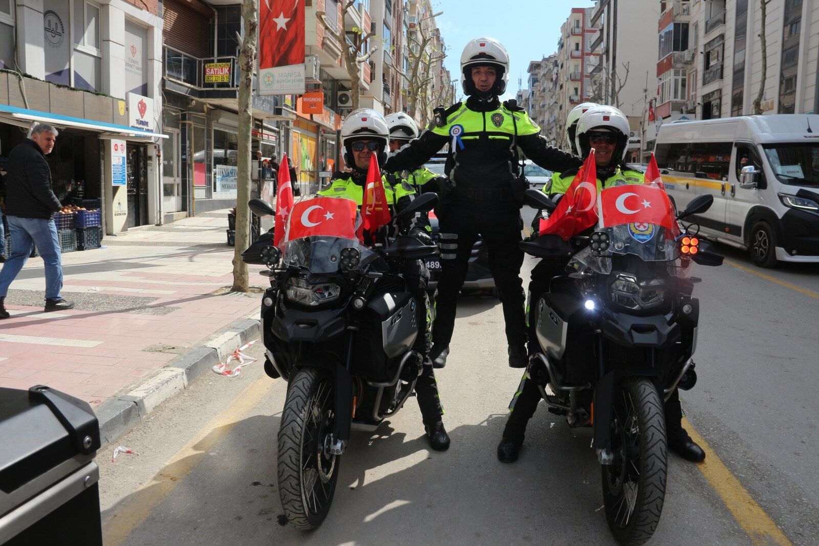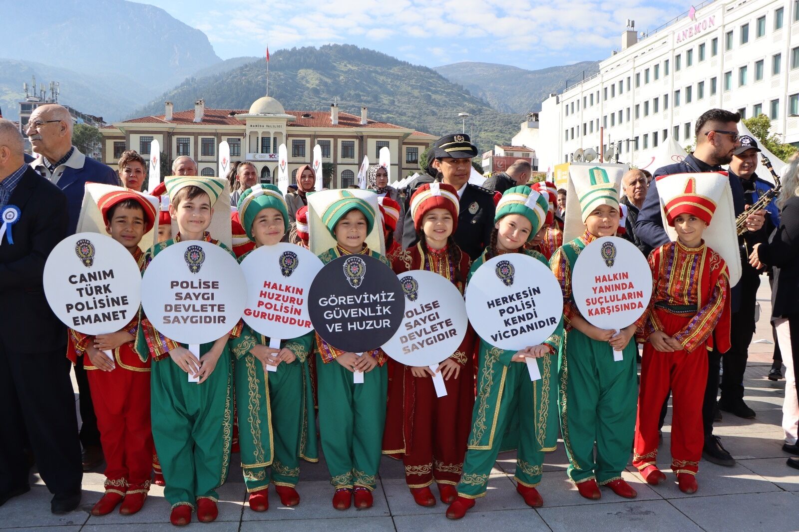 Manisa'da Türk Polis Teşkilatının 181. kuruluş yıl dönümü ve Polis Haftası dolayısıyla tören düzenlendi. Cumhuriyet Meydanı'ndaki programda Mehmet Suphi Egemen İlkokulu Mehter Takımı gösteri sundu.