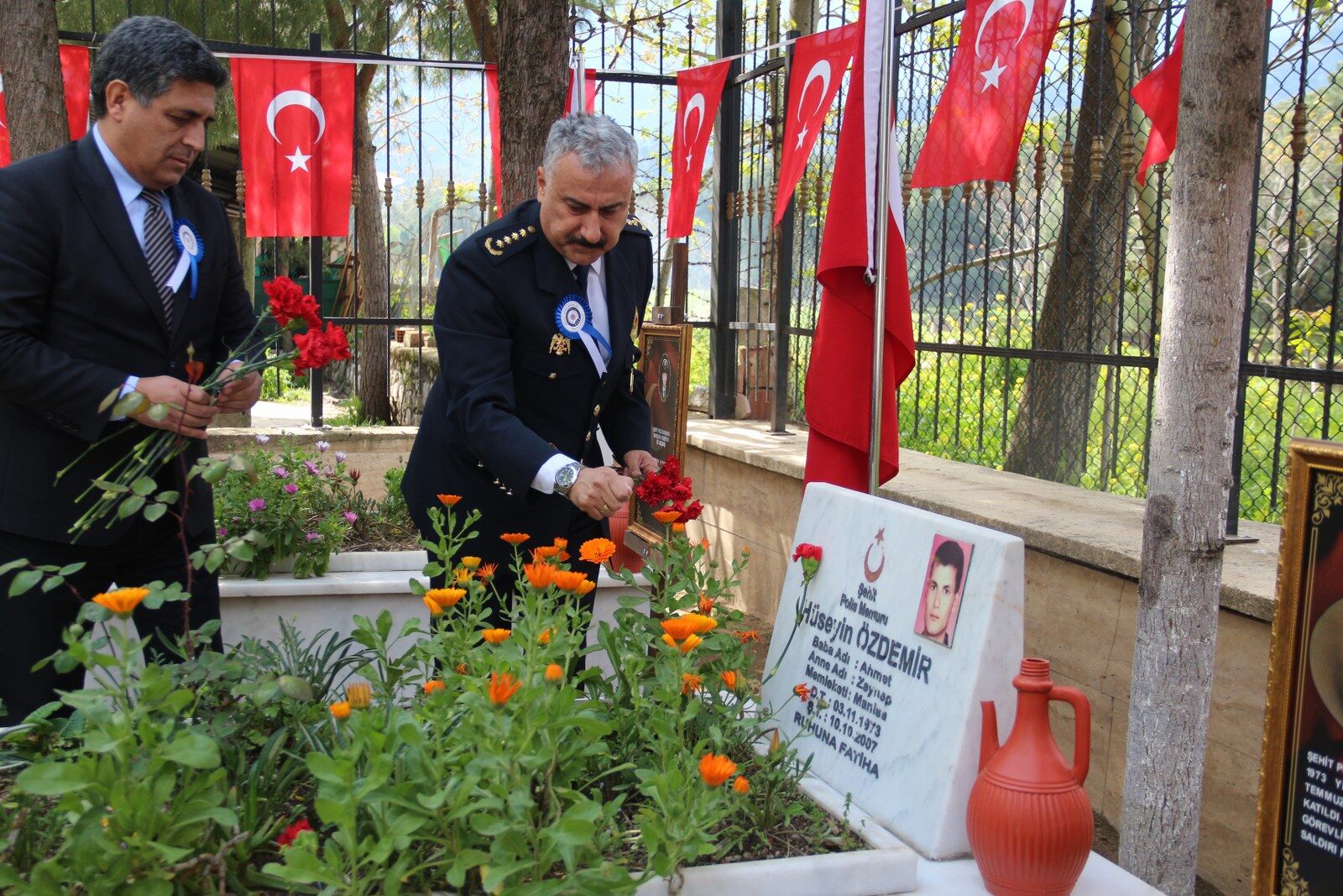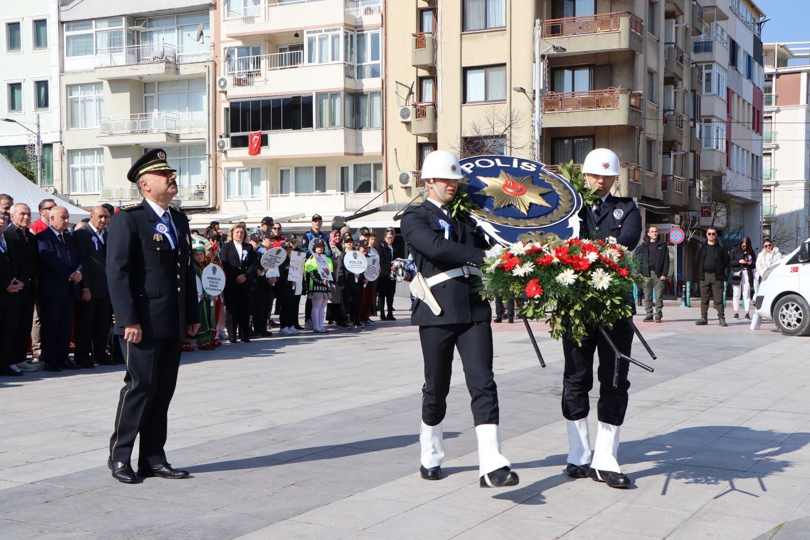 İl Emniyet Müdürü Fahri Aktaş, Atatürk ve Milli Egemenlik Anıtı'na çelenk sundu.
