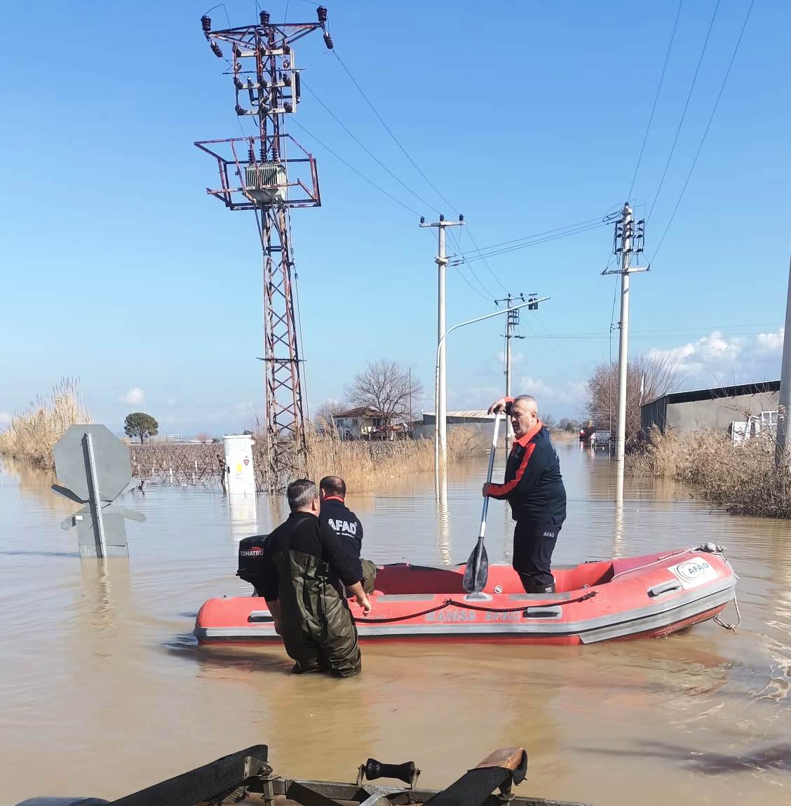 Manisa AFAD su altı ve üstü arama kurtarma ekibi sorumlusu Fırat Şen’in liderliğinde, Mürşit Gündoğdu, Ali Akıncılar, Şerif Yılmaz ve Etdal Meriç’ten oluşan ekip, taşan Gediz Nehri nedeniyle evlerde, bağ damlarında ve besi çiftliklerinde mahsur kalanları kurtardı.