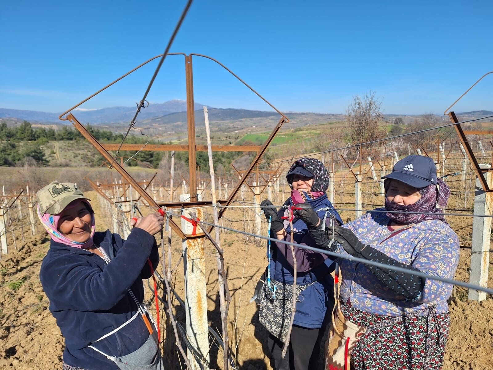 Manisa’nın Sarıgöl ilçesinde üzüm bağlarında çalışan kadın işçiler, 8 Mart Dünya Kadınlar Günü’nü çalışarak geçirdi. Sabahın erken saatlerinde bağlara giden kadınlar, günlük yevmiyelerini kazanmak için asma çubuklarını bağlayarak mesai yaptı.