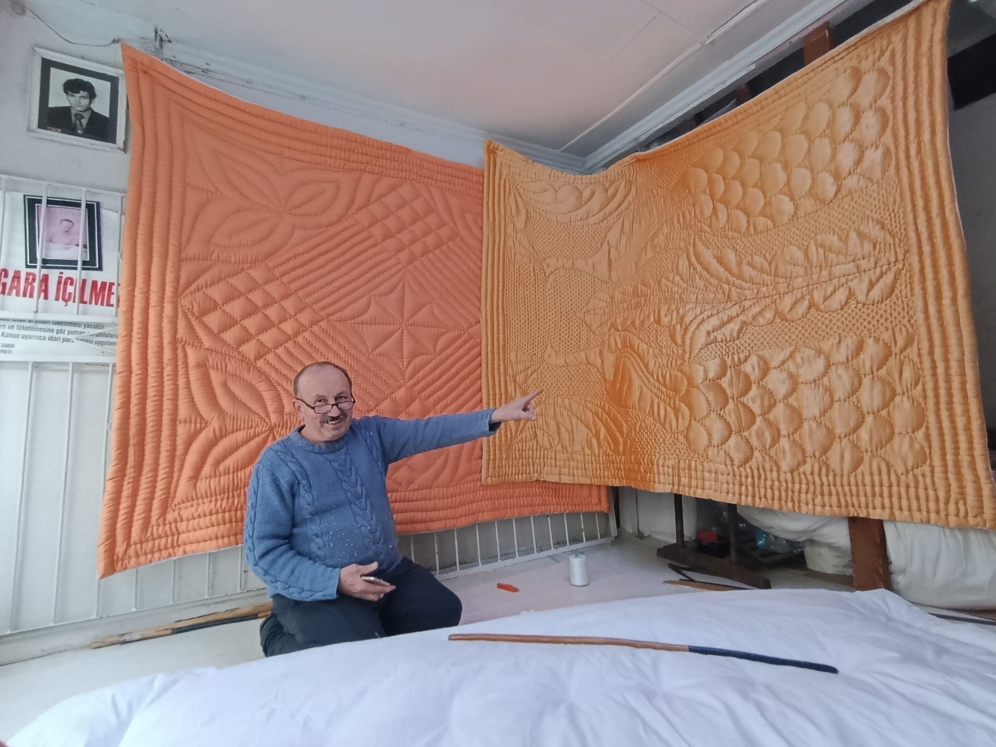 Yorgancı Şerif Usta’nın dükkanına astığı 25 yıllık yorgan ve bu anlamlı hikâye, Manisalı fotoğrafçı Oktay Karaduman tarafından fotoğraf kareleriyle ölümsüzleştirildi.