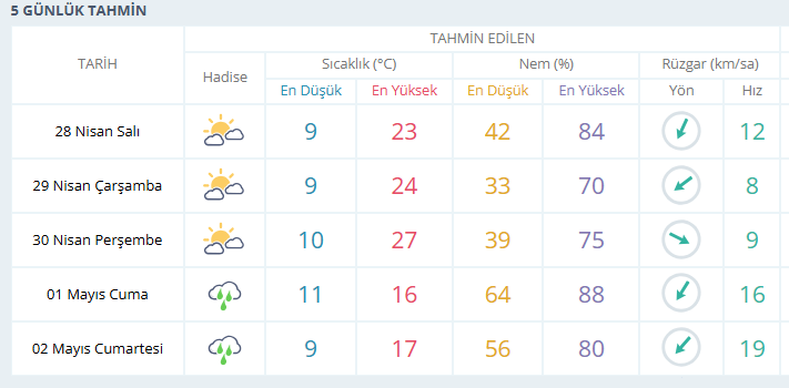 Hafta boyunca parçalı bulutlu havanın etkili olması beklenirken sıcaklıklar salı 23, çarşamba 24 ve perşembe günü 27 dereceye kadar çıkacak.