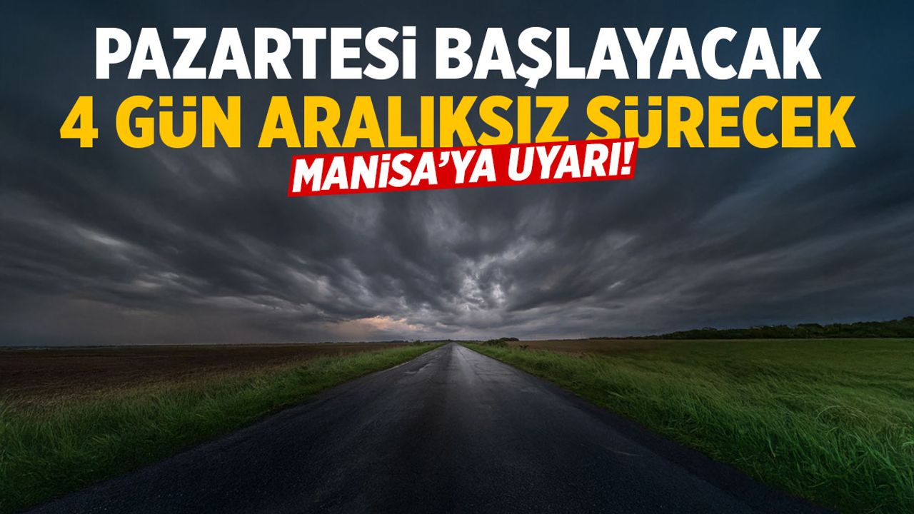Manisa’da yeni haftayla birlikte yağışlı hava etkisini göstermeye hazırlanıyor. Meteoroloji verilerine göre 26 Ocak Pazartesi günü başlayacak yağmurun, 29 Ocak Perşembe gününe kadar kent genelinde aralıksız sürmesi öngörülüyor.