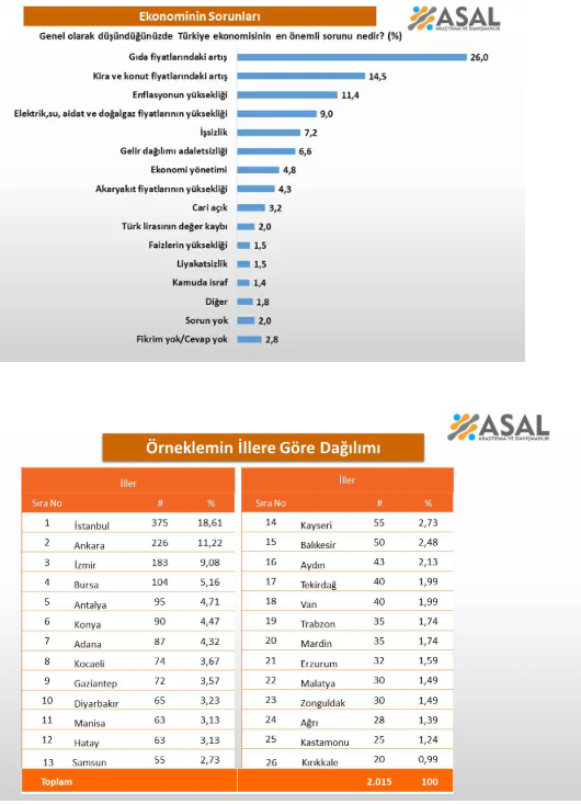ASAL Araştırma’nın 13–21 Şubat tarihleri arasında gerçekleştirdiği kamuoyu araştırması, vatandaşların ekonomik sorunlara ilişkin değerlendirmelerini ortaya koydu. 26 ilde toplam 2 bin 15 kişiyle yapılan ankette katılımcılara “Türkiye ekonomisinin en önemli sorunu nedir?” sorusu yöneltildi.