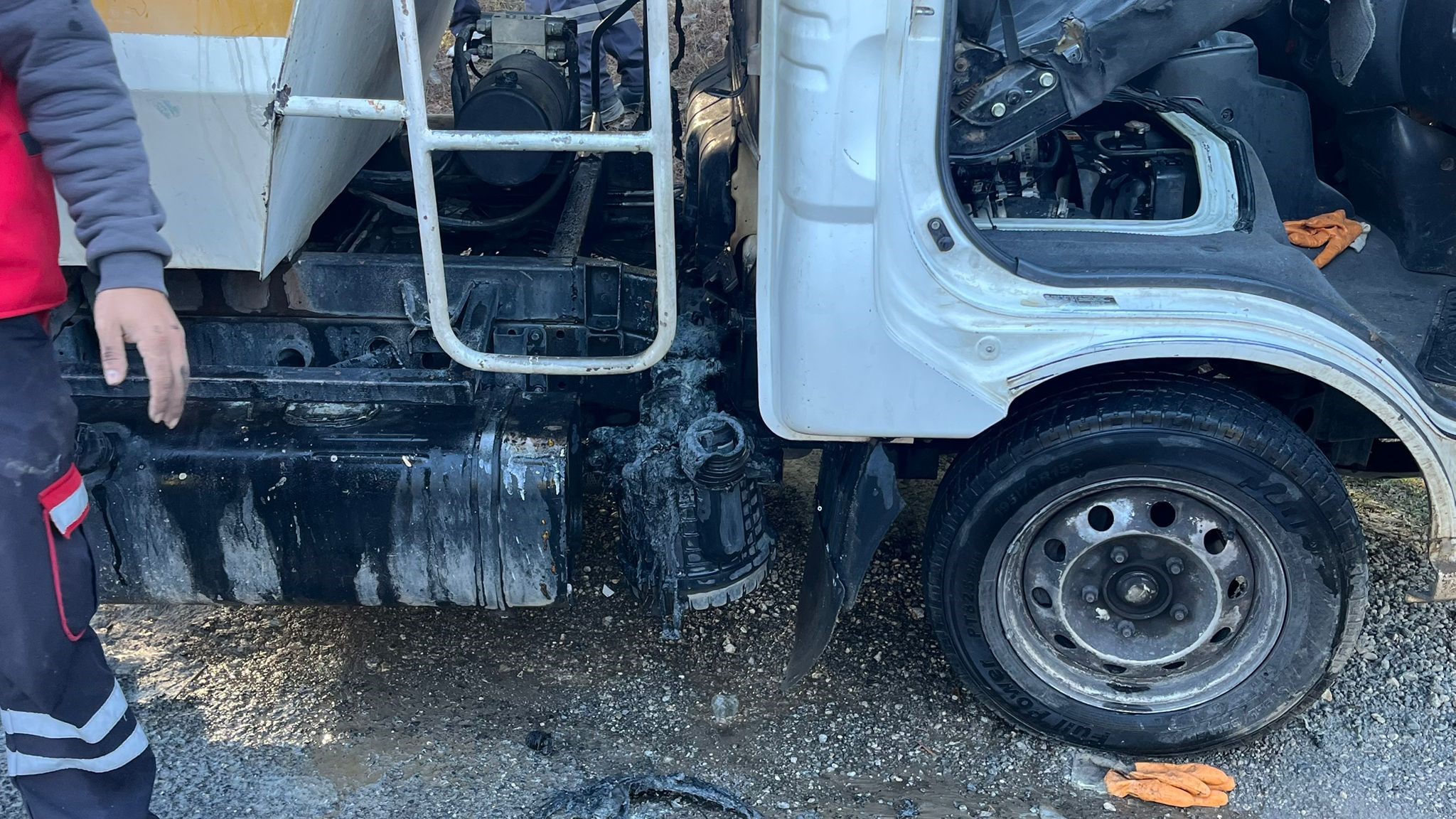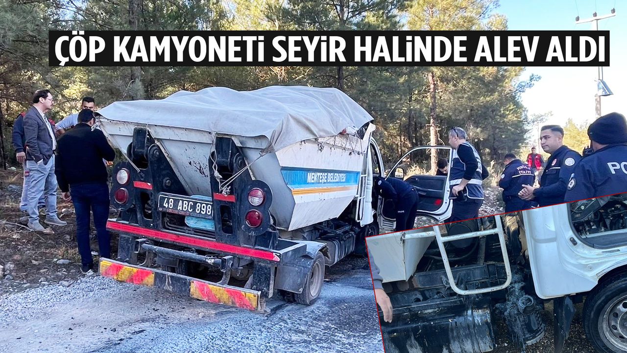 Menteşe Belediyesi’ne ait çöp kamyoneti, Muğla Büyükşehir Katı Atık Depolama Tesisi yolunda motor bölümünden alev alarak yangın çıkardı.