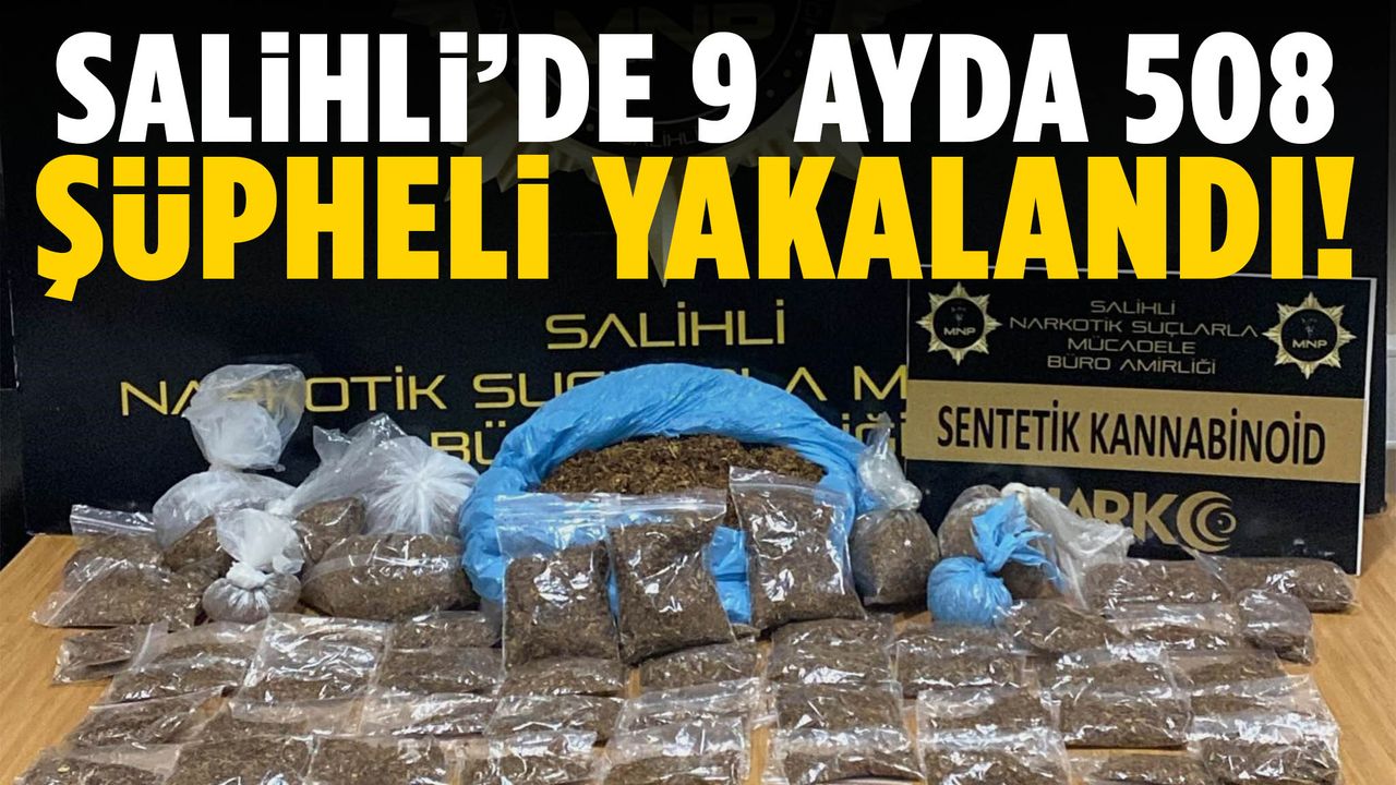 Manisa’nın Salihli ilçesinde emniyet ekiplerinin uyuşturucu ile mücadele çalışmaları aralıksız devam ediyor. İlçe Emniyet Müdürlüğü, yılın ilk dokuz aylık dönemine ilişkin operasyon verilerini paylaştı. Yapılan açıklamada, uyuşturucu satışı yapanlara, kullanıcılarına ve yetiştirenlere yönelik düzenlenen operasyonlarda 358 olayın aydınlatıldığı ve toplam 508 şüphelinin yakalandığı bildirildi.