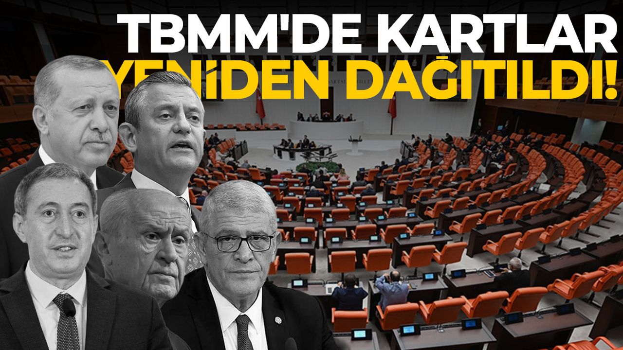 TBMM’deki güncel sandalye dağılımı AK Parti 275, CHP 138, DEM Parti 56, MHP 47, İYİ Parti 29, Yeni Yol Grubu 20, bağımsızlar 9, HÜDA PAR 4, Yeniden Refah Partisi 4, Türkiye İşçi Partisi 3, Demokratik Bölgeler Partisi 2, EMEP 2, Saadet Partisi 1, Demokratik Sol Parti 1 ve Demokrat Parti 1 şeklinde oluştu.