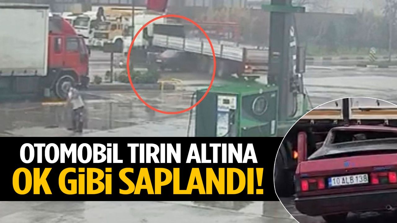 Görüntülerde tırın manevra yaptığı sırada otomobilin duramayarak dorsenin altına girdiği görülüyor.