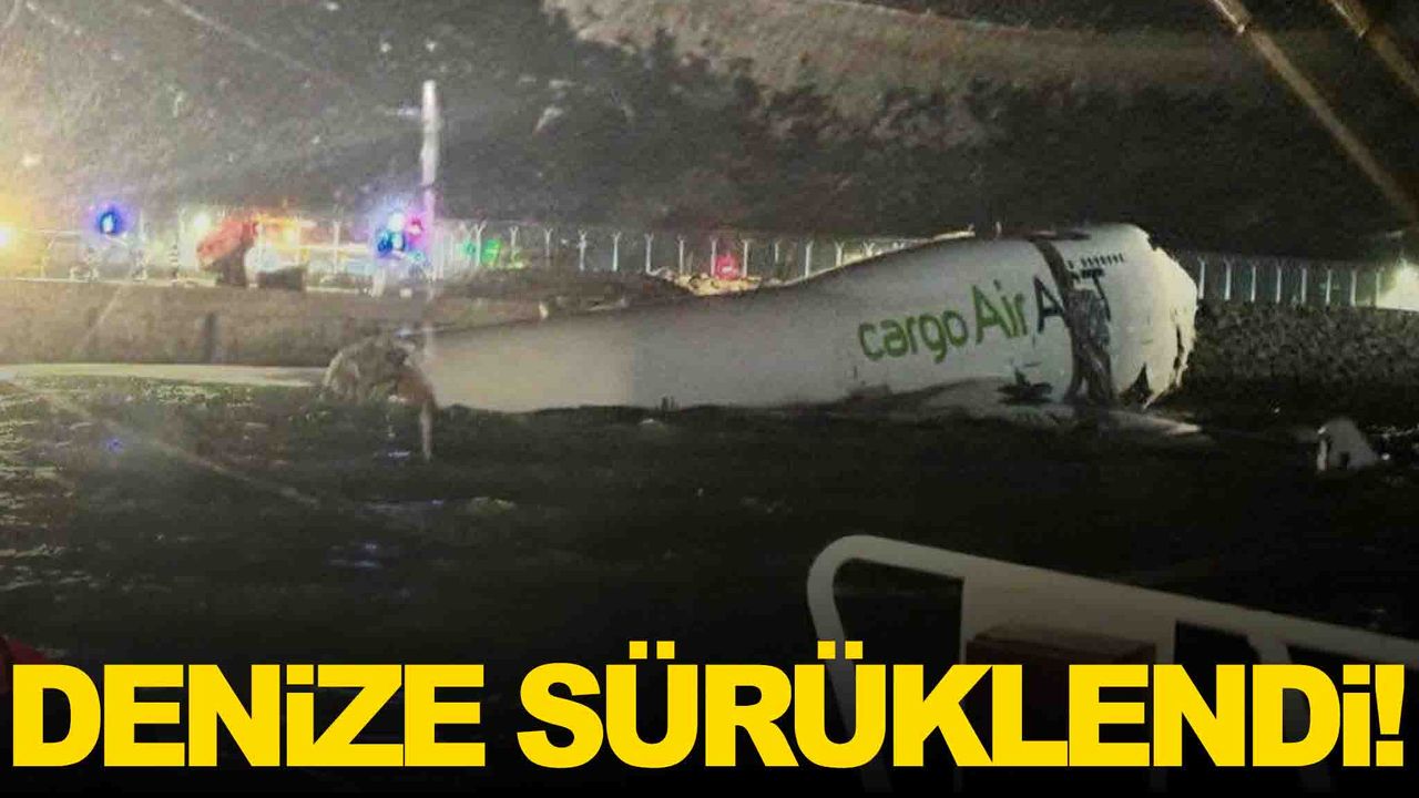 Pistten çıkan uçak denize sürüklendi