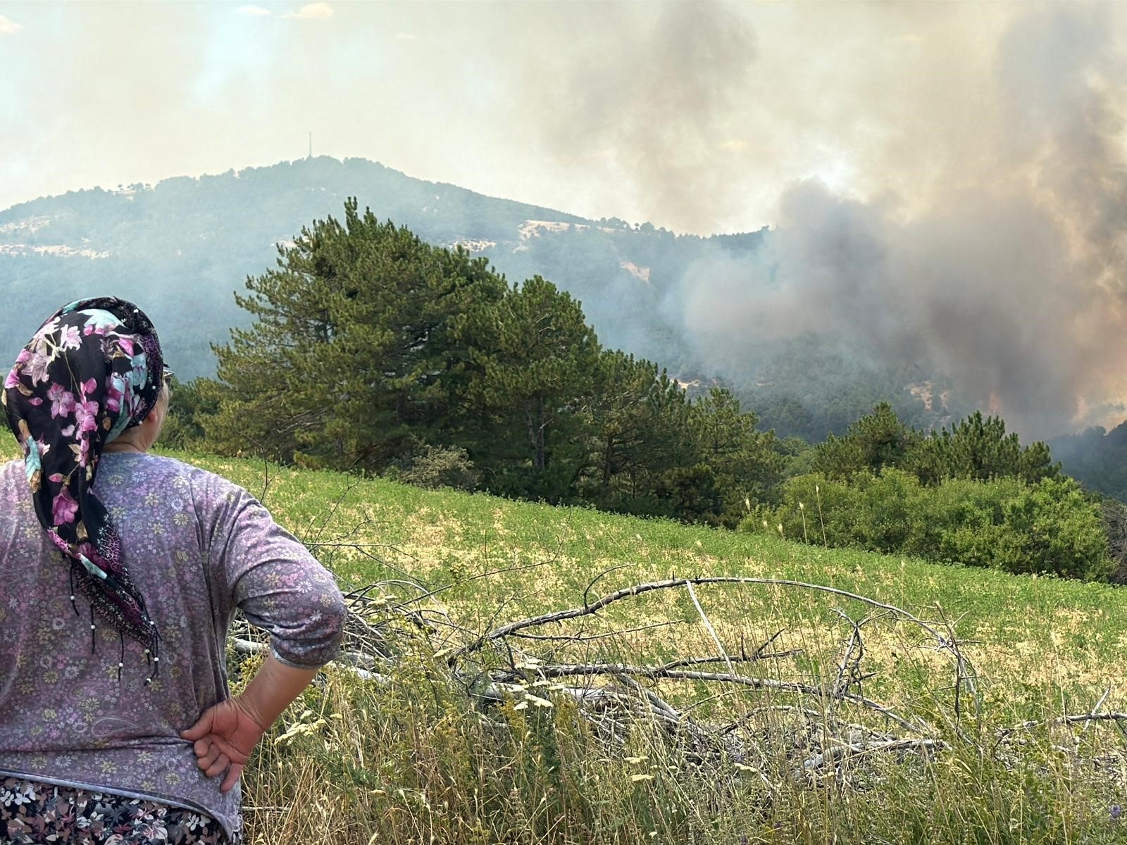 Rüzgarın da etkisiyle hızla yayılan yangına, bölgeye sevk edilen arazöz, itfaiye ekipleri ve helikopterlerle karadan ve havadan müdahale ediliyor.