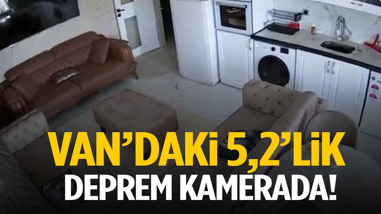 Deprem anı, Tuşba’da bulunan bir evin güvenlik kamerasına saniye saniye yansıdı. Görüntülerde sarsıntının etkisiyle avizelerin hızla sallandığı, mobilyaların yerinden oynadığı ve mutfak eşyalarının titrediği görüldü.